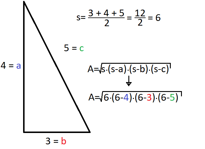 2. Calcular el semiperímetro de el tríangulo, el cuál ya sabemos es 6.